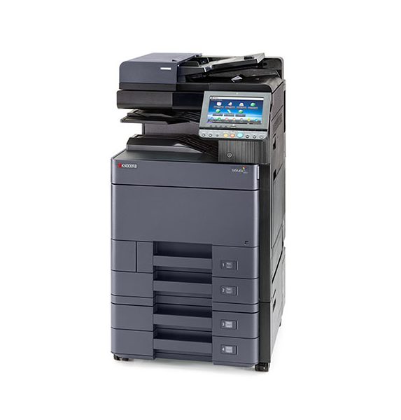 Kyocera TASKalfa 5052ci is a high-performance A3 color multifunction printer designed for busy offices, offering print, copy, scan, and optional fax functions with speeds of up to 50 pages per minute, 1200 × 1200 dpi print quality, and a 9-inch touchscreen, delivering reliable, efficient, and high-quality document handling for medium to high-volume workloads.